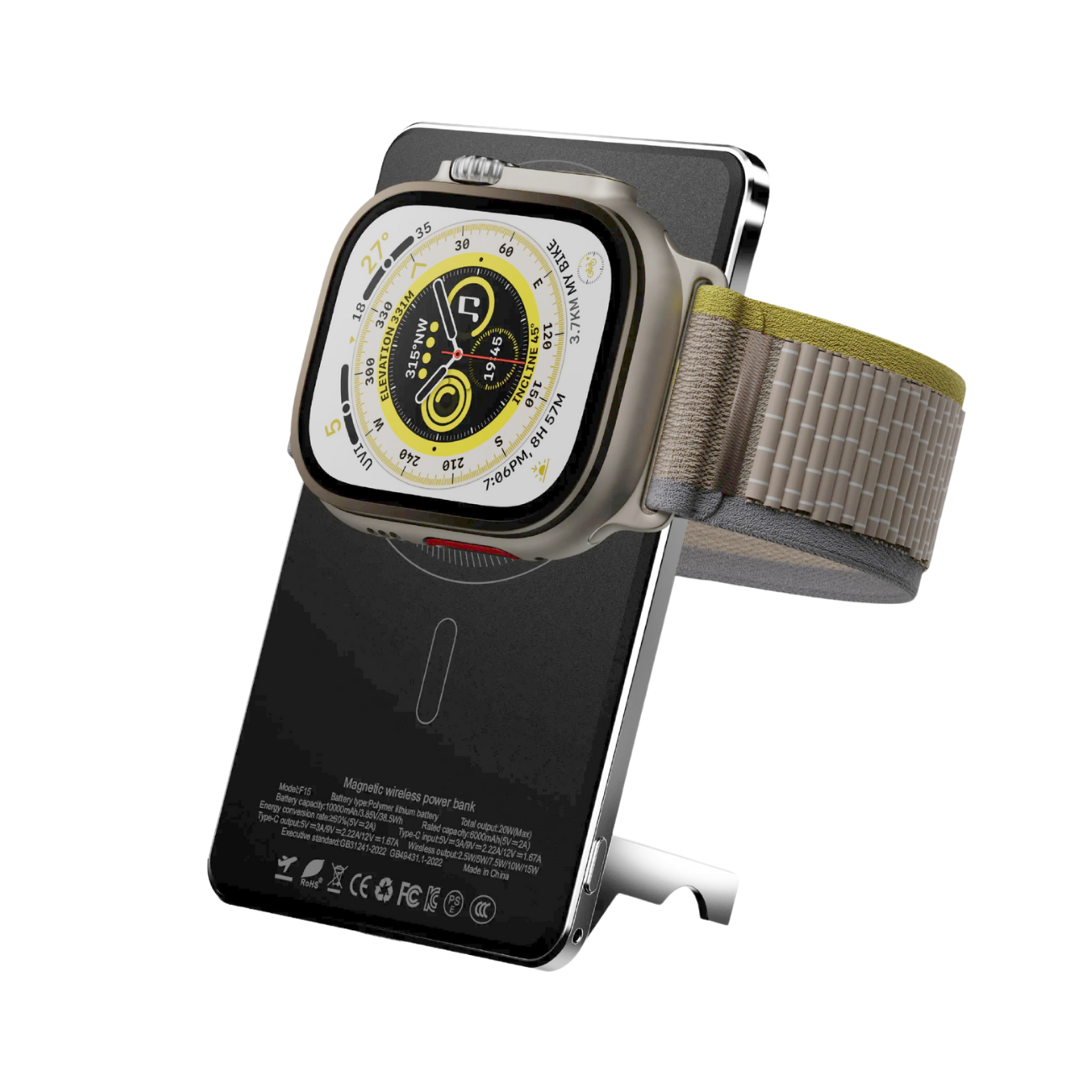Engineered for the Apple ecosystem. Magnetically charge your iPhone and Apple Watch at the same time, all from one sleek power bank. It's the only travel charger you'll need.
