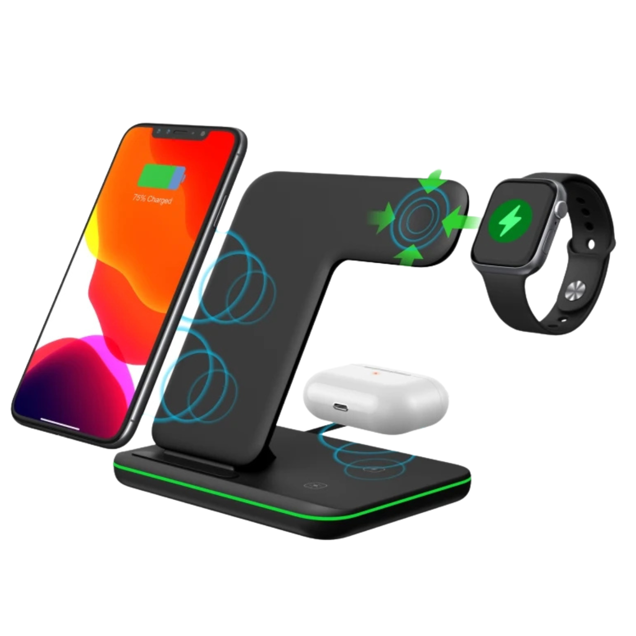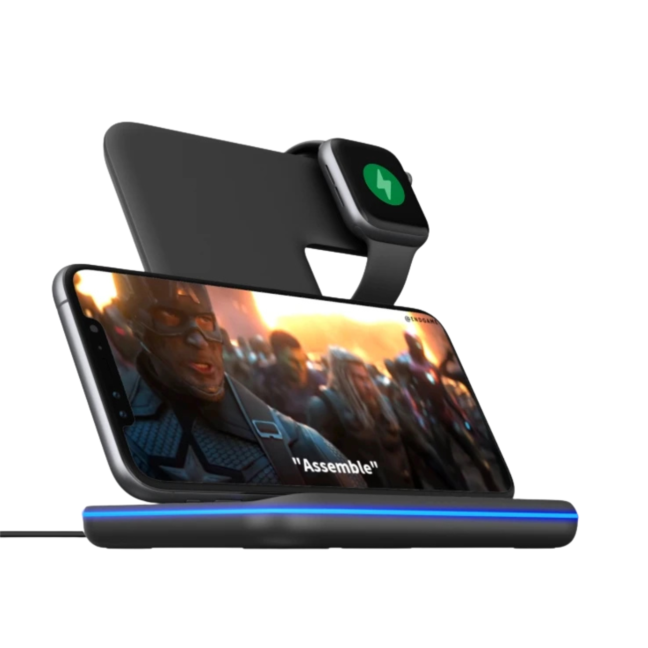 Declutter your space and simplify your charging routine. The Trinity Charger powers up your phone, smartwatch, and earbuds all at once from a single, elegant stand. Just place your devices, and let the power flow.